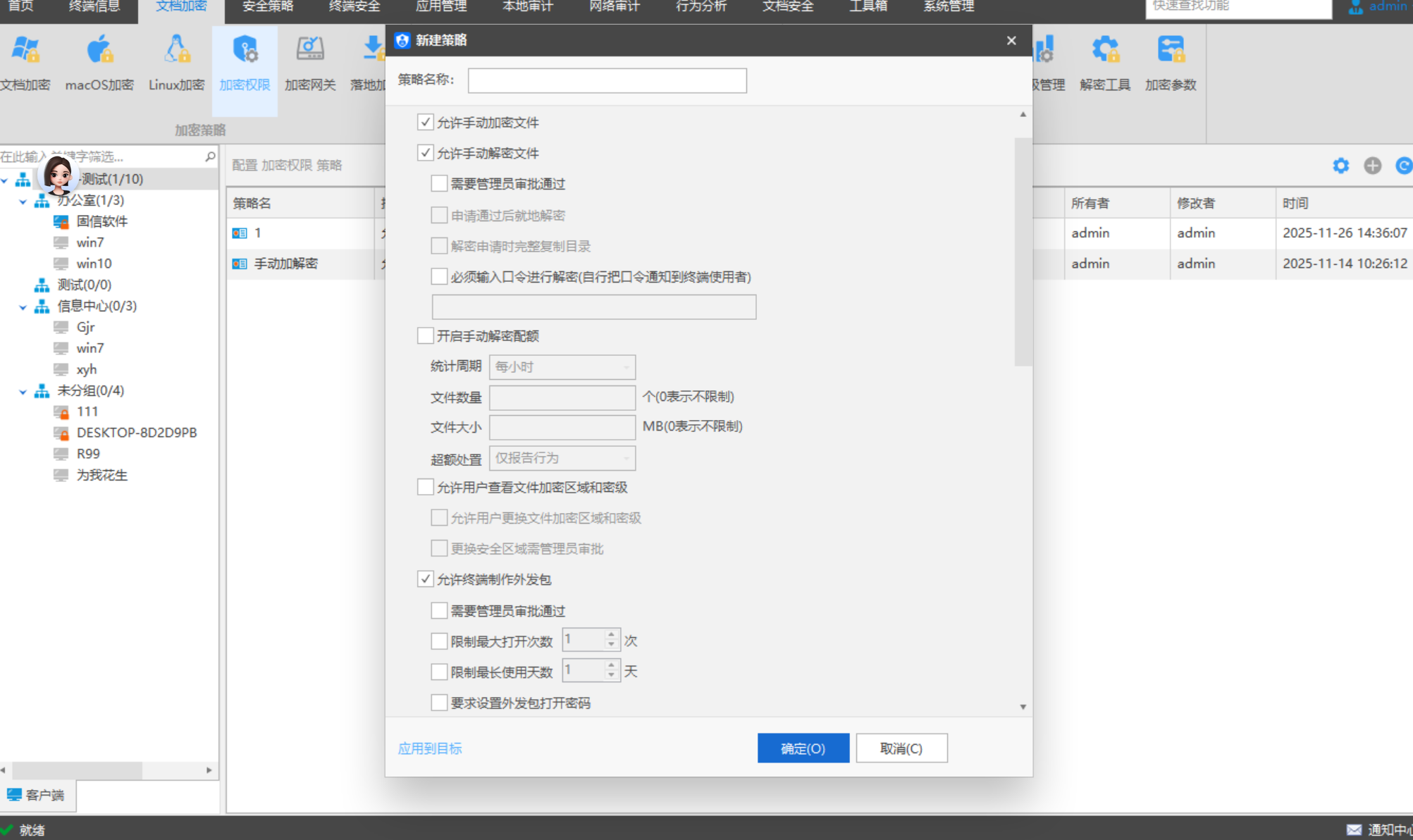 文档分享流转控制:针对需要分享给合作单位或离开企业办公网络的重要文件提供申请解密、员工手动解密、外发权限包等多种方式。