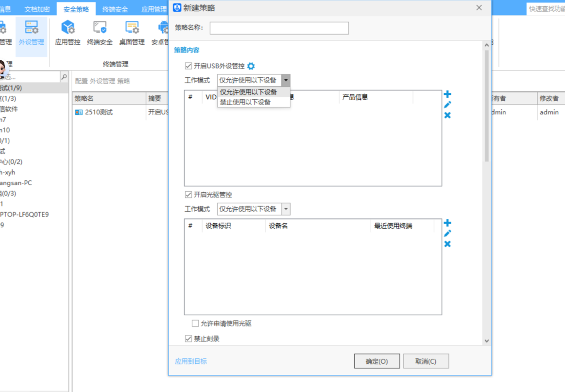 外接设备管理:构建全面的设备管理框架,深入操作系统底层接口,实现对外接设备(如USB设备、移动硬盘、光驱、打印机、蓝牙等)的严格管理,有效防止物理设备带来的终端安全风