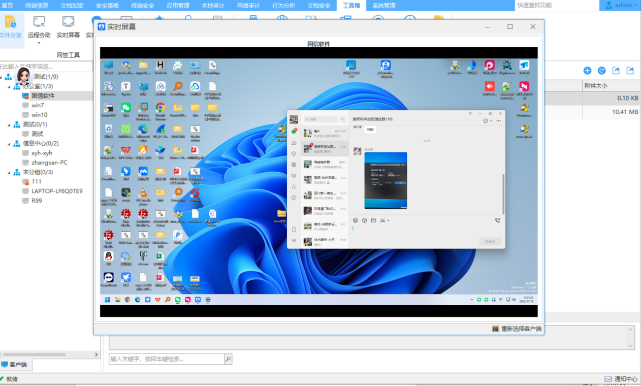 实时屏幕:管理端支持实时查看终端计算机的屏幕、运行的进程信息,服务信息和设备等信息,实时了解终端计算机运行情况。可同时查看16台终端的屏幕,且4k高清画质,并支持全程录像。