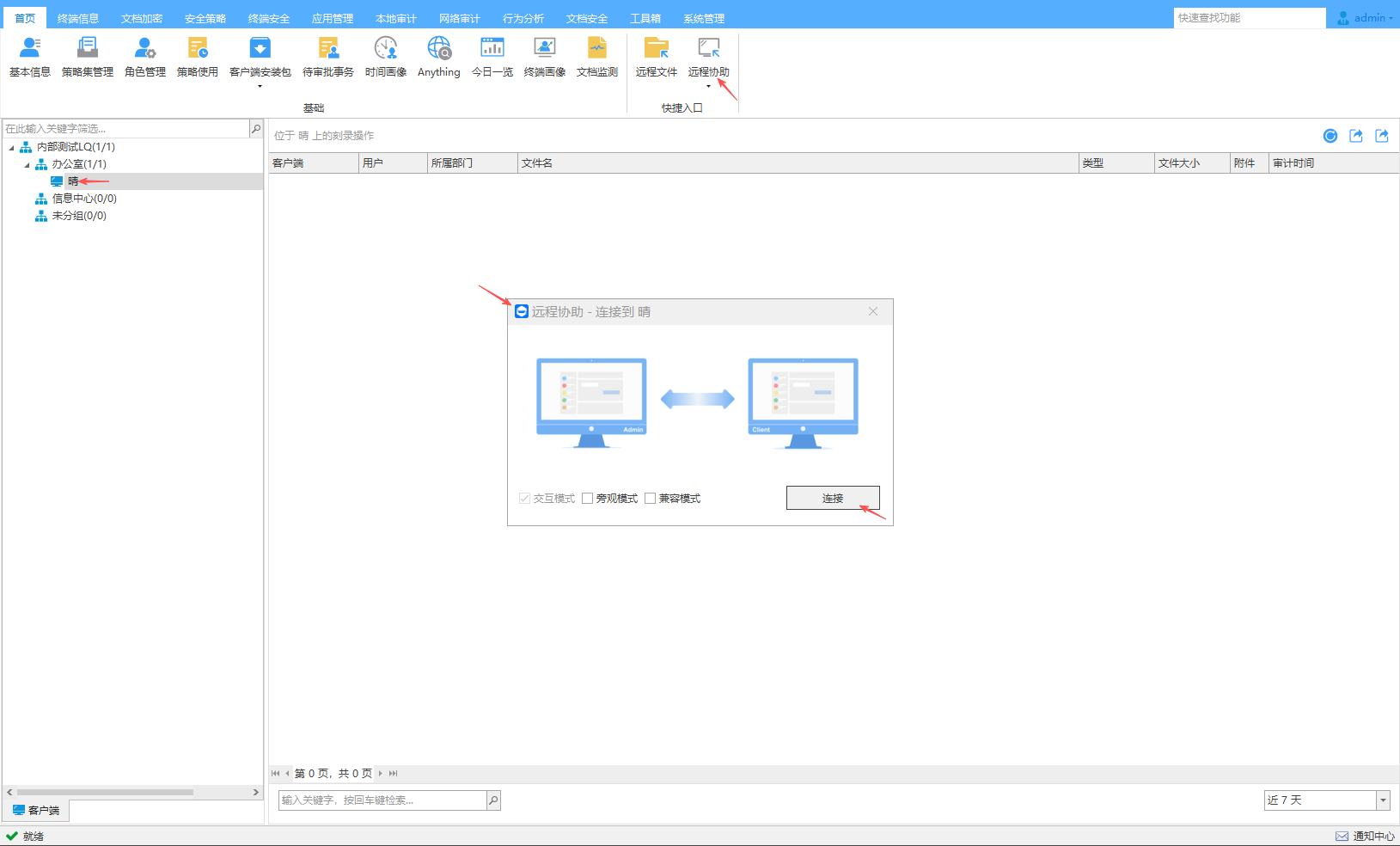 管理员可以远程操控终端电脑,可在未经过终端电脑同意的情况下远程操控,同时也可以设置经过终端电脑同意的情况下才可以远程操控。