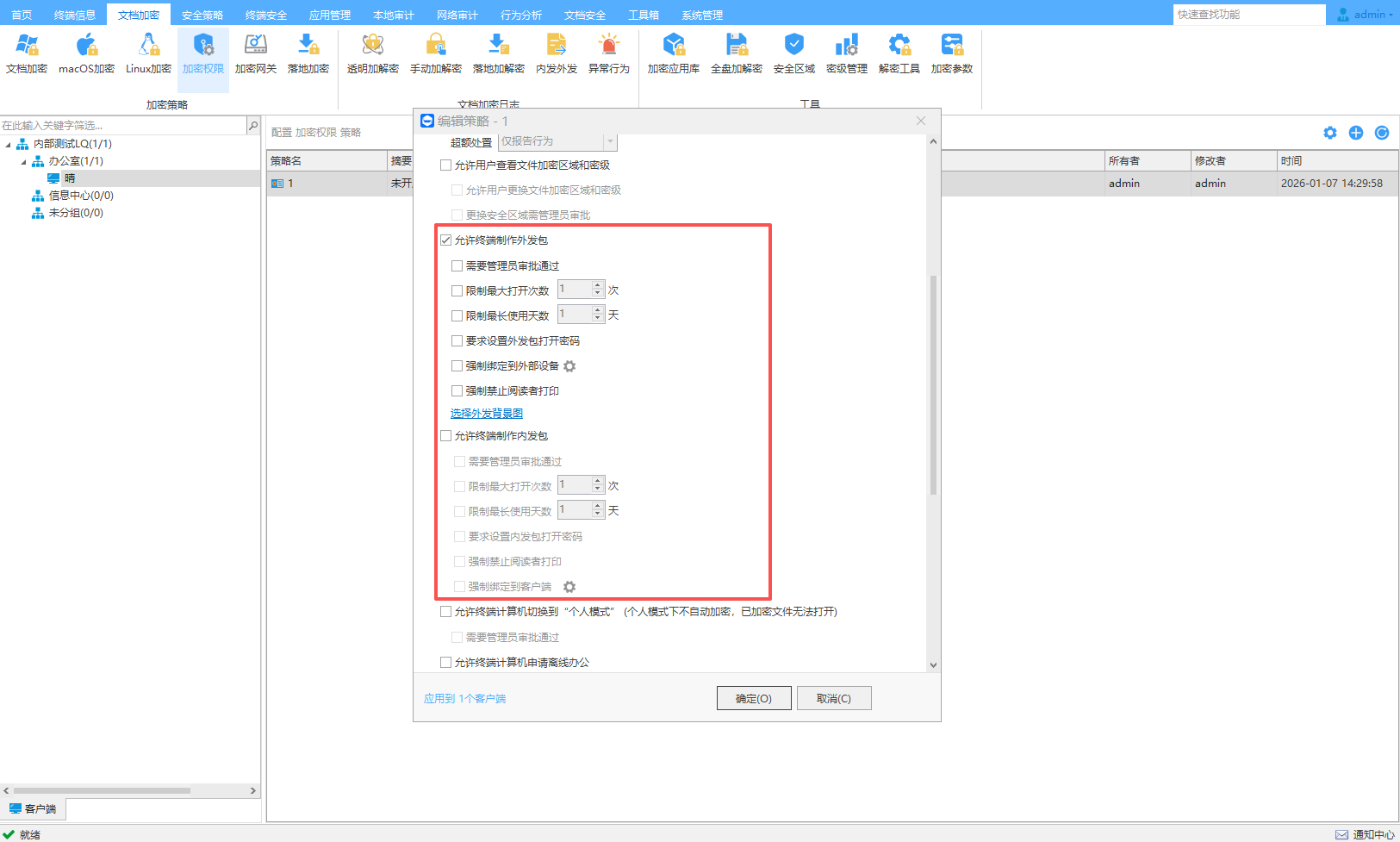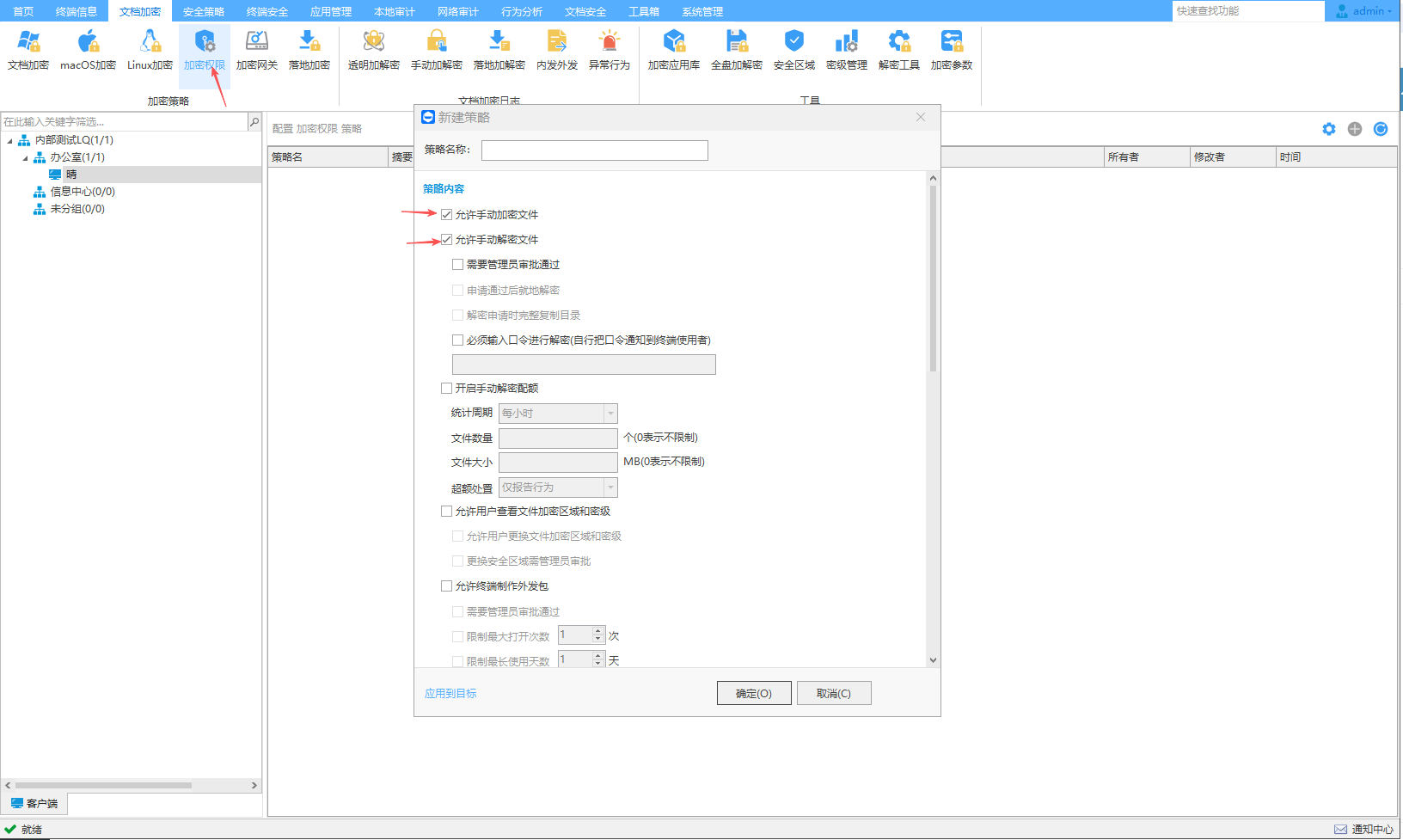 通过管理员下发权限,终端计算机用户可以手动对文件进行加密操作。