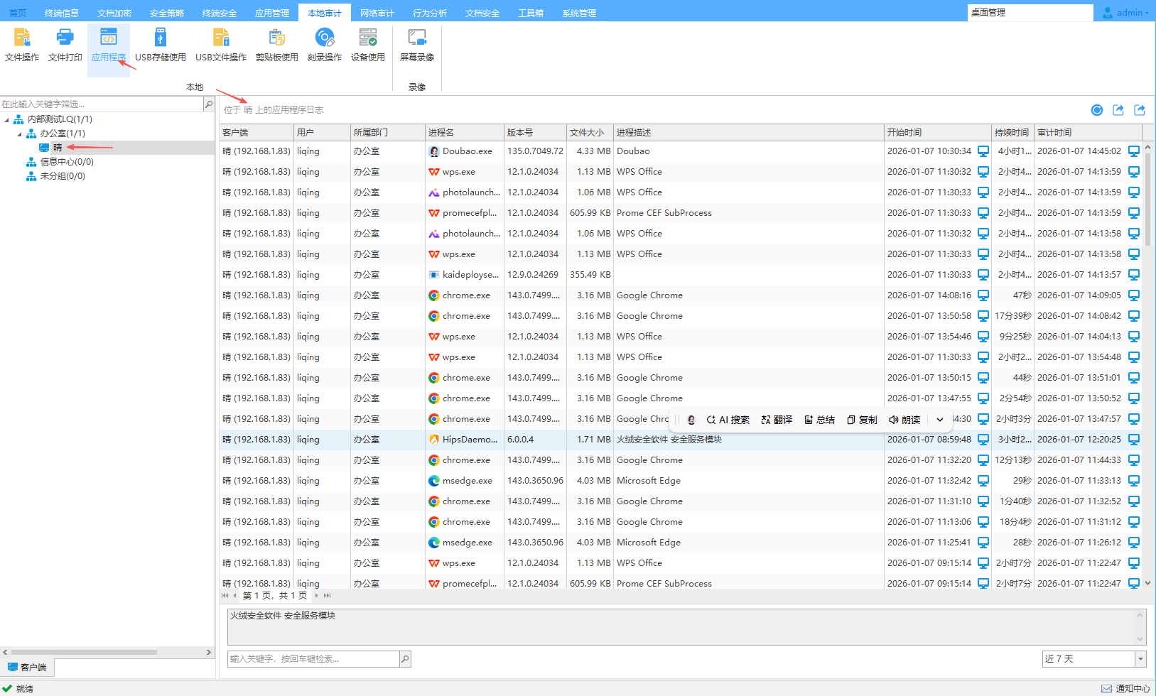 详细记录终端计算机使用过的所有应用程序,支持进程名、进程描述及使用时长!