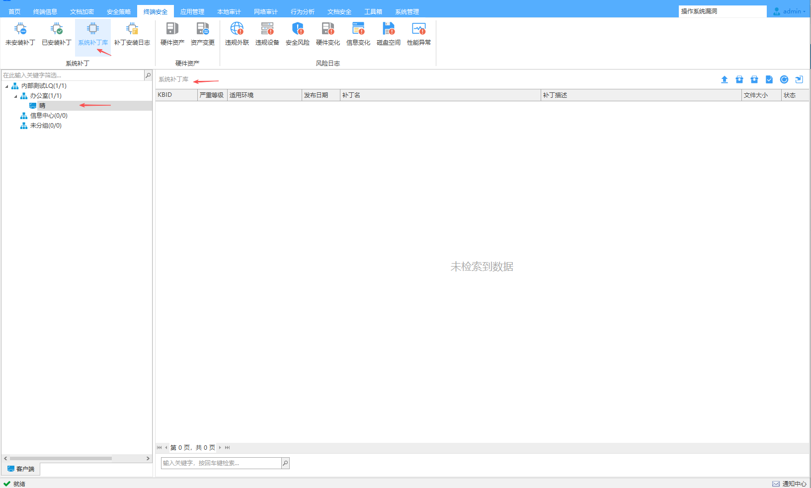 查看系统服务器现有的所有系统补丁信息,支持漏洞名称、KBID、补丁等级和发布时间,同时支持右键导出数据、复制和删除操作。