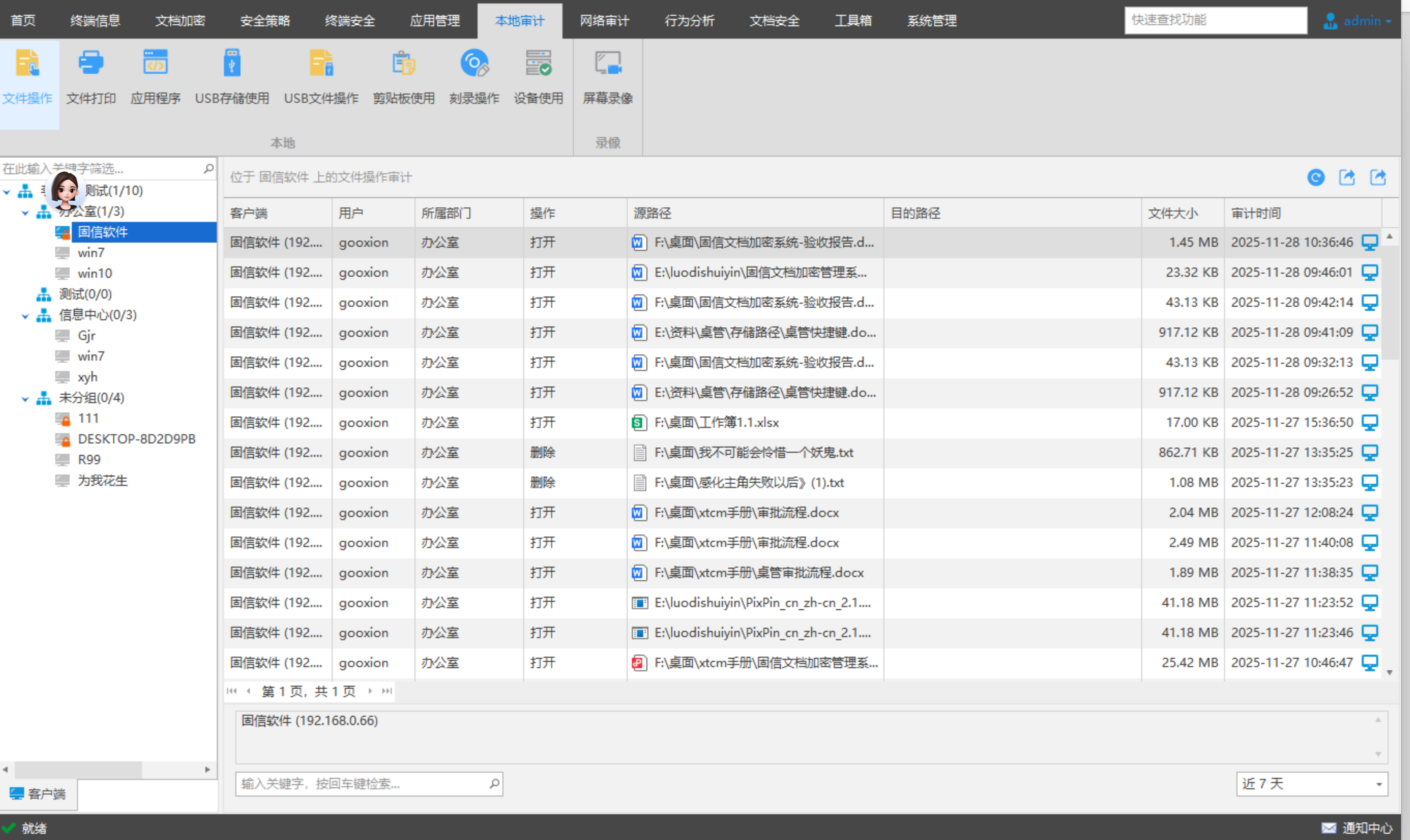 文件操作监控:系统支持查看所有终端计算机操作文件的记录,支持文件/文件夹新建、复制、删除、重命名、打开文件和编辑文件等监