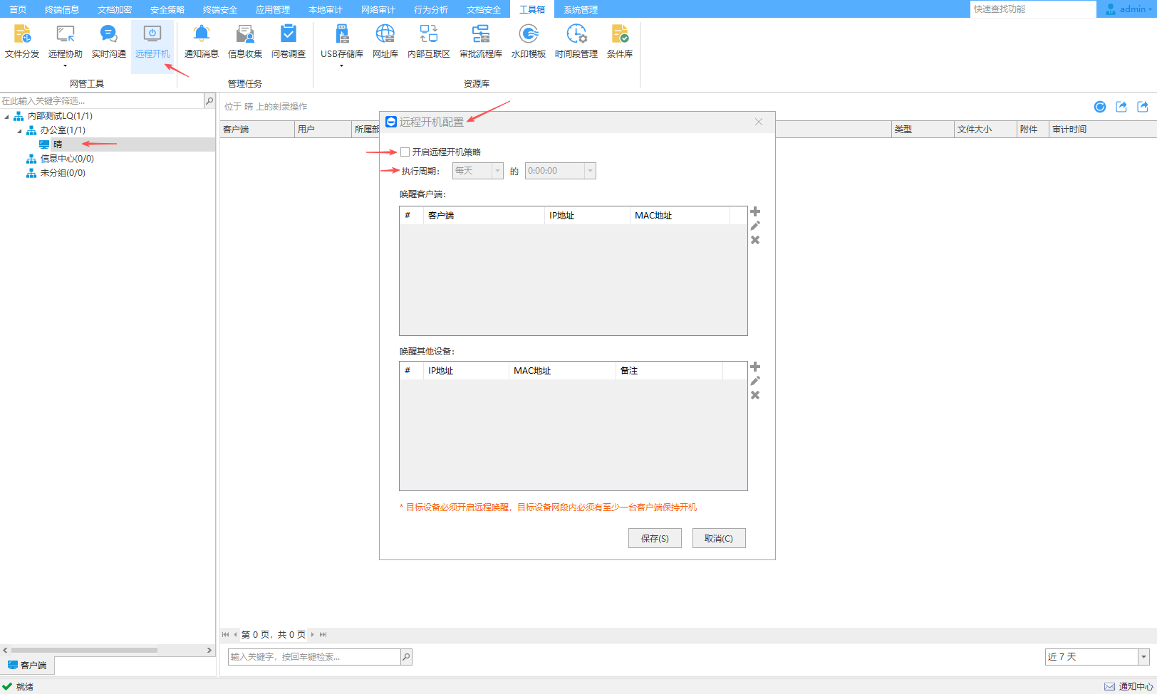 唤醒网络内处于关机状态的主机包括安装了客户端的主机和未安装客户端的主机。