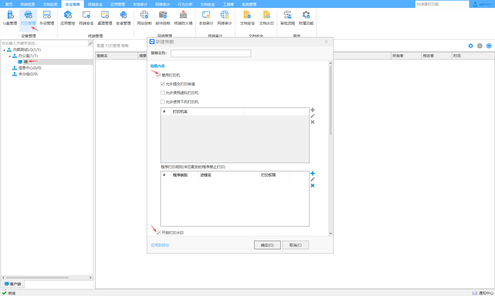 细粒度打印管理服务,虚拟,网络,本地,纸张,水印等十余种外接设备管控,光驱、刻录、便携、无线、蓝牙、串口、并口等违规设备使用实时报警
