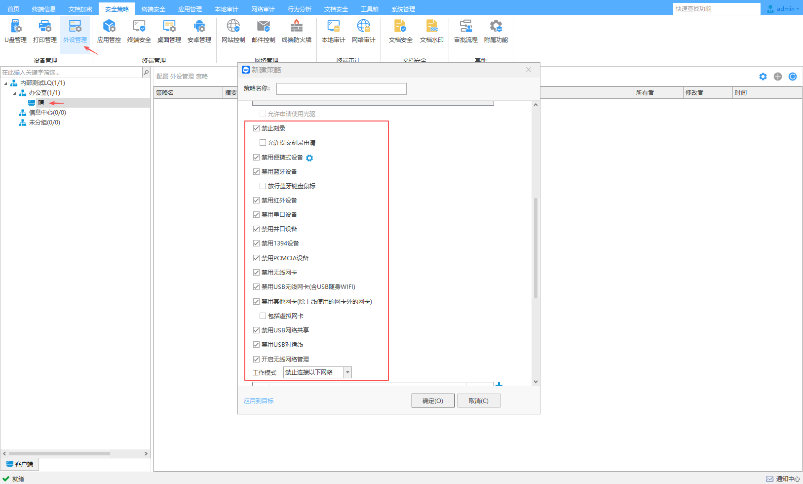 十余种外接设备管控,光驱、刻录、便携、无线、蓝牙、串口、并口等违规设备使用实时报警