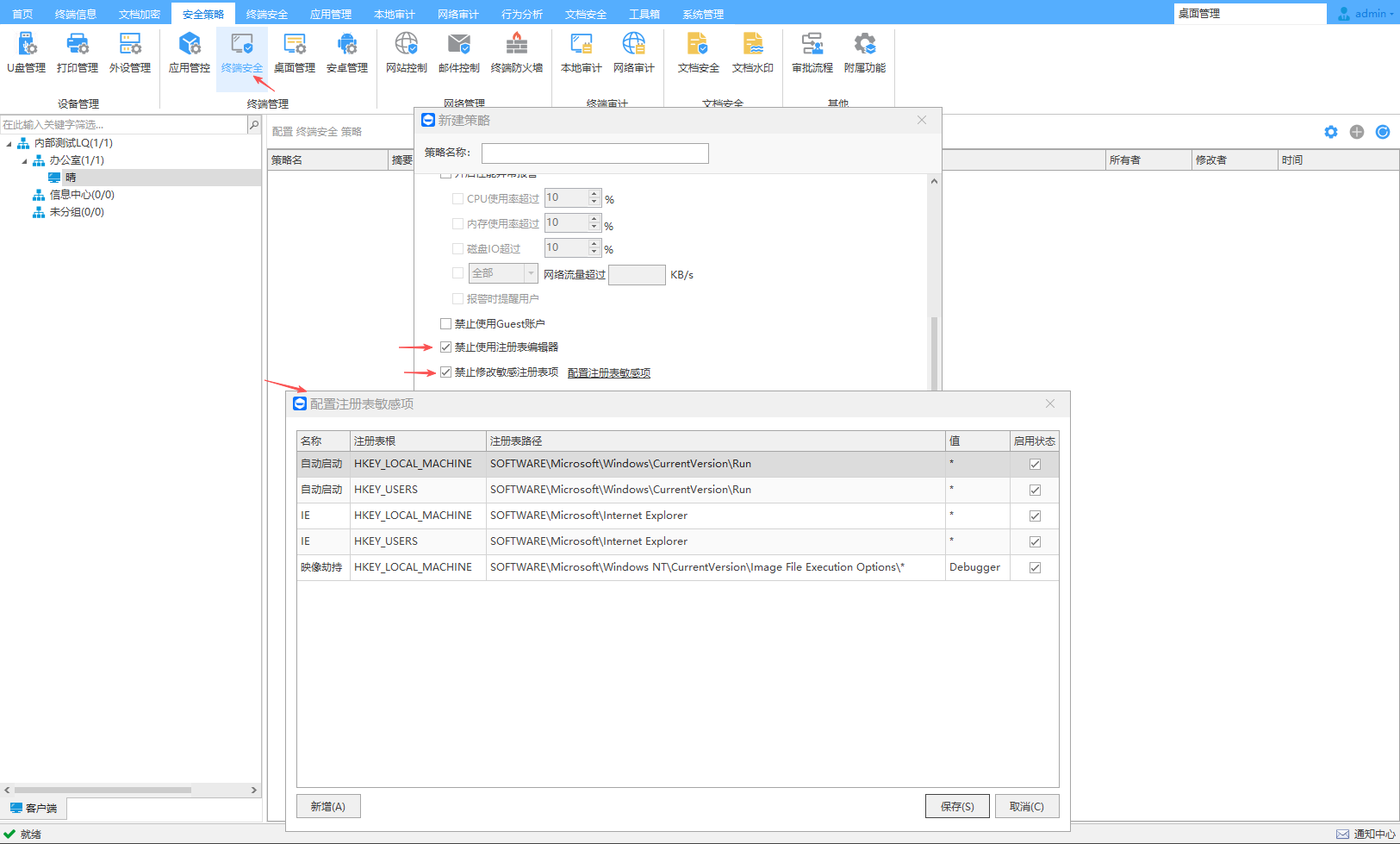 支持禁止恶意程序修改敏感注册表项,系统内置关键注册表项,同时支持自定义添加敏感注册表项。