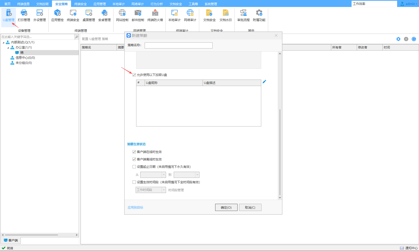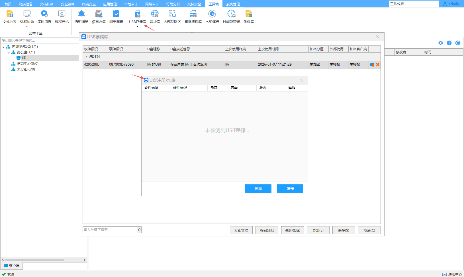 以指定密钥初始化加密U盘后,同时拥有密钥和加密U盘策略的PC可以自动挂载加密分区。